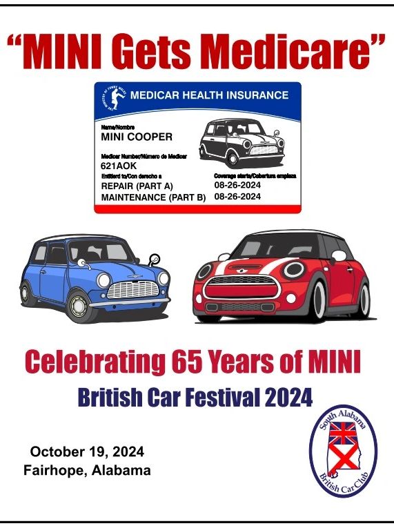 Date October 19, 2024The South Alabama British Car Club will host our 33rd annual British Car Festival on October 19th in beautiful Fairhope, Alabama on the eastern shore of Mobile Bay. The theme car is the Mini. Mini turns 65 this year and our theme is "Mini Gets Medicare". But the show is open to all classes of British cars. Visit our website for registration form and additional information.